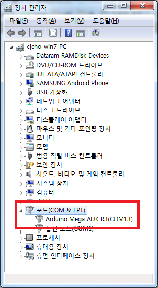확인해 보면 com port 13번으로 잡힌것을 확인 할 수 있다.